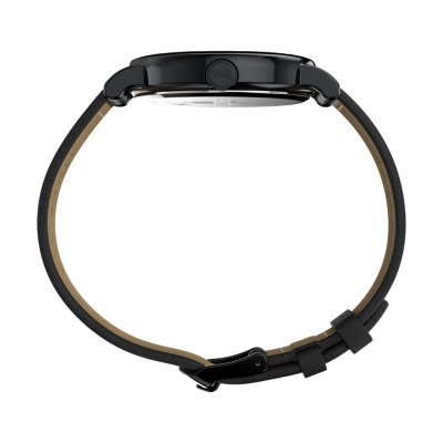 This Timex watch has a case made of metal alloy with a diameter of 40 mm and is fitted with a leather band. Inside the case lies a Timex movement and the watch features a Mineral crystal.