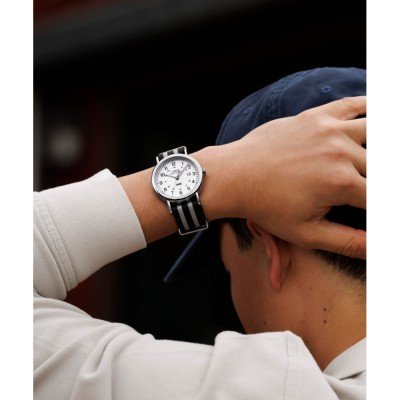 This Timex watch has a case made of metal alloy with a diameter of 40 mm and is fitted with a textile band. Inside the case lies a Timex movement and the watch features a Mineral crystal.