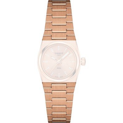This Tissot watch strap is made of stainless steel and is attached to the watch by means of quick release pushpins. The band has a width of 18 mm and is closed by means of a butterfly clasp with push buttons. The strap has no straight mount which means that this strap is only suitable for the watches listed below.