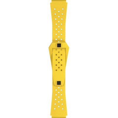 This Tissot watch strap is made of rubber and is attached to the watch by means of quick release pushpins. The band has a width of 24 mm and is closed by means of a loop. The strap has no straight mount which means that this strap is only suitable for the watches listed below.
