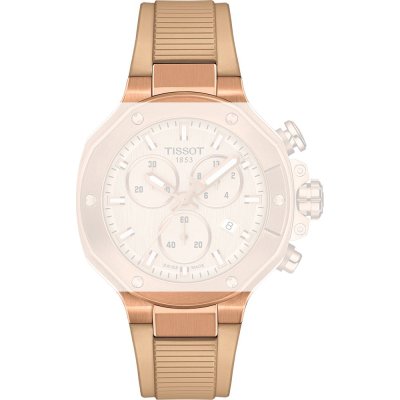 This Tissot watch strap is made of silicone and is attached to the watch by means of saddle screw. The band has a width of 17 mm and is closed by means of a buckle. The strap has no straight mount which means that this strap is only suitable for the watches listed below.