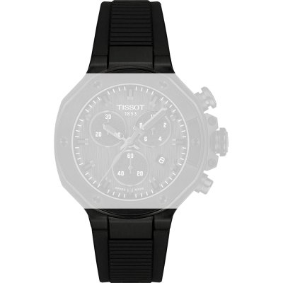 This Tissot watch strap is made of silicone and is attached to the watch by means of saddle screw. The band has a width of 17 mm and is closed by means of a buckle. The strap has no straight mount which means that this strap is only suitable for the watches listed below.