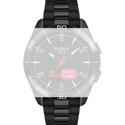 This Tissot watch strap is made of titanium and is attached to the watch by means of quick release pushpins. The band has a width of 21 mm and is closed by means of a deployment clasp with push buttons. The strap has no straight mount which means that this strap is only suitable for the watches listed below.