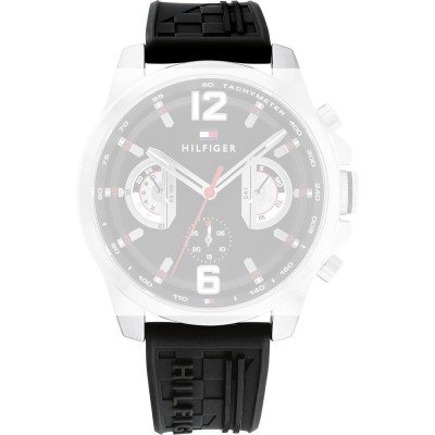 This Tommy Hilfiger watch strap is made of silicone and is attached to the watch by means of pushpins. The band has a width of 22 mm and is closed by means of a buckle. The strap has a straight mount which means that this strap is suitable for all Tommy Hilfiger watches with a straight mount.