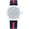 This Tommy Hilfiger watch strap is made of silicone and is attached to the watch by means of pushpins. The band has a width of 17 mm and is closed by means of a buckle. The strap has a straight mount which means that this strap is suitable for all Tommy Hilfiger watches with a straight mount.