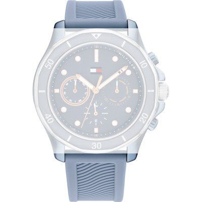 This Tommy Hilfiger watch strap is made of silicone and is attached to the watch by means of pushpins. The band has a width of 20 mm and is closed by means of a buckle. The strap has a straight mount which means that this strap is suitable for all Tommy Hilfiger watches with a straight mount.