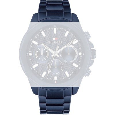 This Tommy Hilfiger watch strap is made of stainless steel and is attached to the watch by means of pushpins. The band has a width of 22 mm and is closed by means of a deployment clasp with push buttons. The strap has no straight mount which means that this strap is only suitable for the watches listed below.
