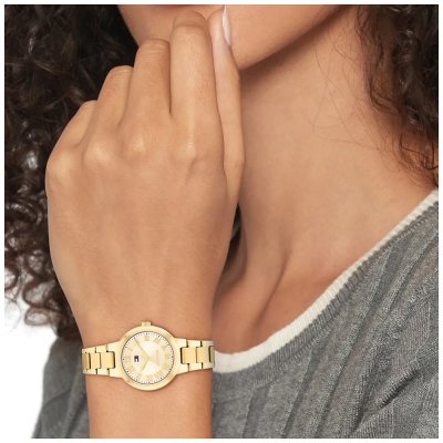 This Tommy Hilfiger watch has a case made of stainless steel with a diameter of 28 mm and is fitted with a stainless steel band. Inside the case lies a Seiko movement and the watch features a Mineral crystal.