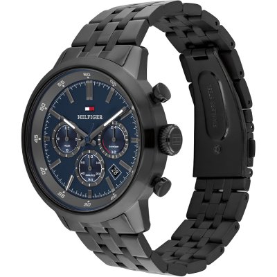 This Tommy Hilfiger watch has a case made of stainless steel with a diameter of 43 mm and is fitted with a stainless steel band. Inside the case lies a Seiko Instruments Inc. movement and the watch features a Mineral crystal.