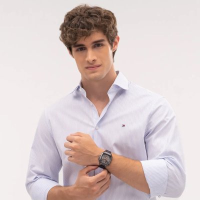 This Tommy Hilfiger watch has a case made of stainless steel with a diameter of 39 mm and is fitted with a stainless steel band. Inside the case lies a Seiko Instruments Inc. movement and the watch features a Mineral crystal.