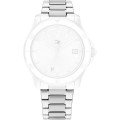 This Tommy Hilfiger watch strap is made of stainless steel and is attached to the watch by means of pushpins. The band has a width of 18 mm and is closed by means of a butterfly clasp with push buttons. The strap has no straight mount which means that this strap is only suitable for the watches listed below.