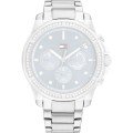 This Tommy Hilfiger watch strap is made of stainless steel and is attached to the watch by means of pushpins. The band has a width of 20 mm and is closed by means of a deployment clasp with push buttons. The strap has no straight mount which means that this strap is only suitable for the watches listed below.