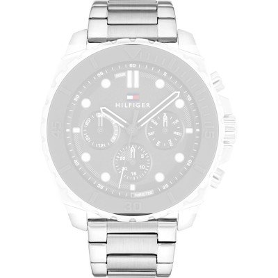 This Tommy Hilfiger watch strap is made of stainless steel and is attached to the watch by means of pushpins. The band has a width of 24 mm and is closed by means of a deployment clasp with push buttons. The strap has a straight mount which means that this strap is suitable for all Tommy Hilfiger watches with a straight mount.