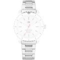 This Tommy Hilfiger watch strap is made of stainless steel and is attached to the watch by means of pushpins. The band has a width of 16 mm and is closed by means of a deployment clasp with push buttons. The strap has no straight mount which means that this strap is only suitable for the watches listed below.
