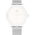 This Tommy Hilfiger watch strap is made of stainless steel and is attached to the watch by means of pushpins. The band has a width of 18 mm and is closed by means of a milanese clasp. The strap has a straight mount which means that this strap is suitable for all Tommy Hilfiger watches with a straight mount.