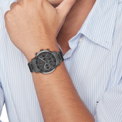 This Tommy Hilfiger watch has a case made of stainless steel with a diameter of 42 mm and is fitted with a stainless steel band. Inside the case lies a Seiko Instruments Inc. movement and the watch features a Mineral crystal.