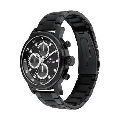 This Tommy Hilfiger watch has a case made of stainless steel with a diameter of 46 mm and is fitted with a stainless steel band. Inside the case lies a Seiko Instruments Inc. movement and the watch features a Mineral crystal.