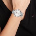 This Tommy Hilfiger watch has a case made of stainless steel with a diameter of 36 mm and is fitted with a stainless steel band. Inside the case lies a Seiko movement and the watch features a Mineral crystal.