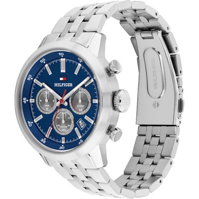 This Tommy Hilfiger watch has a case made of stainless steel with a diameter of 43 mm and is fitted with a stainless steel band. Inside the case lies a Seiko Instruments Inc. movement and the watch features a Mineral crystal.