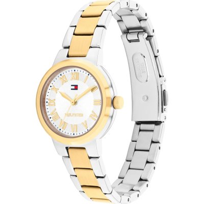 This Tommy Hilfiger watch has a case made of stainless steel with a diameter of 28 mm and is fitted with a stainless steel band. Inside the case lies a Seiko movement and the watch features a Mineral crystal.