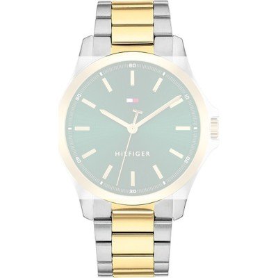 This Tommy Hilfiger watch strap is made of stainless steel and is attached to the watch by means of steel pins. The band has a width of 22 mm and is closed by means of a deployment clasp with push buttons. The strap has no straight mount which means that this strap is only suitable for the watches listed below.