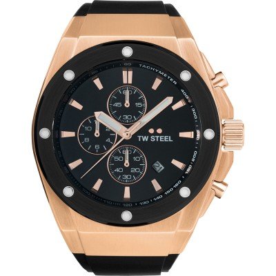 This TW Steel watch has a case made of stainless steel with a diameter of 44 mm and is fitted with a rubber band. Inside the case lies a Miyota movement and the watch features a Sapphire coated mineral crystal.
