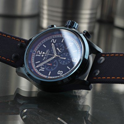 This TW Steel watch has a case made of stainless steel with a diameter of 48 mm and is fitted with a Textile over leather band. Inside the case lies a Ronda movement and the watch features a Single anti-reflective sapphire crystal.