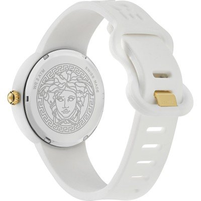 This Versace watch has a case made of rubber with a diameter of 38 mm and is fitted with a rubber band. Inside the case lies a Ronda movement and the watch features a Sapphire crystal.