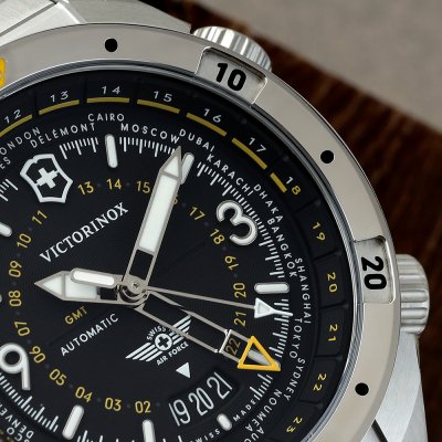 The Air Pro Automatic is a modern-classic aviator watch built for precision and endurance. On the three-dimensional dial,tracking of up to three time zones is possible, with the second time zone indicated via a GMT hand. The watch features two large and easy to manage crowns: one at 4 o’clock for the time and the second at 2 o’clock for the GMT functions. All are clearly legible through the oversized hands and markers filled with Swiss Super-LumiNova® and dedicated GMT-hand. The watch is powered by a Swiss Made Sellita SW330-2 automatic movement with a 56-hour power reserve, which is visible through the exhibition case back. The watch further features ISO-certified anti-shock protection and water resistance up to 20 ATM. It is worn on a comfortable and easy to exchange genuine rubber strap and also available with a stainless steel bracelet.