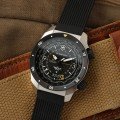 The Air Pro Automatic is a modern-classic aviator watch built for precision and endurance. On the three-dimensional dial,tracking of up to three time zones is possible, with the second time zone indicated via a GMT hand. The watch features two large and easy to manage crowns: one at 4 o’clock for the time and the second at 2 o’clock for the GMT functions. All are clearly legible through the oversized hands and markers filled with Swiss Super-LumiNova® and dedicated GMT-hand. The watch is powered by a Swiss Made Sellita SW330-2 automatic movement with a 56-hour power reserve, which is visible through the exhibition case back. The watch further features ISO-certified anti-shock protection and water resistance up to 20 ATM. It is worn on a comfortable and easy to exchange genuine rubber strap and also available with a stainless steel bracelet.