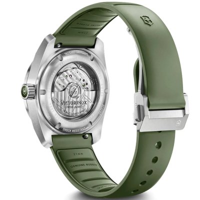This Victorinox watch has a case made of stainless steel with a diameter of 39 mm and is fitted with a rubber band. Inside the case lies a La Joux-Perret movement and the watch features a Single anti-reflective sapphire crystal.