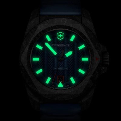 This Victorinox watch has a case made of carbon with a diameter of 41 mm and is fitted with a rubber band. Inside the case lies a Sellita movement and the watch features a Sapphire crystal.