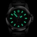 This Victorinox watch has a case made of stainless steel with a diameter of 41 mm and is fitted with a stainless steel band. Inside the case lies a Ronda movement and the watch features a Single anti-reflective sapphire crystal.