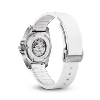 This Victorinox watch has a case made of stainless steel with a diameter of 32 mm and is fitted with a rubber band. Inside the case lies a Sellita movement and the watch features a Single anti-reflective sapphire crystal.