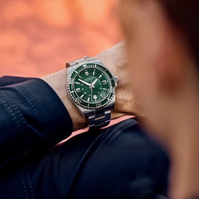 This Victorinox watch has a case made of stainless steel with a diameter of 43 mm and is fitted with a stainless steel band. Inside the case lies a Ronda movement and the watch features a Sapphire crystal.