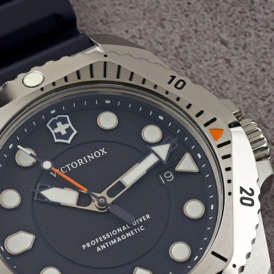 The Victorinox Dive Pro quartz watches are available in both steel and titanium and with a choice of different straps, from brigtly colored rubber to practical paracord. What they do share is a powerful Swiss Ronda quartz movement, ISO 6425 certification, 30 ATM water resistance, a unidirectional rotating bezel and high-visibility indices and hands. The watch is engineered, manufactured and tested at Victorinox’ own factory in Delémont.