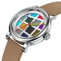This Walter Gropius watch has a case made of stainless steel with a diameter of 40 mm and is fitted with a leather band. Inside the case lies a Seiko Instruments Inc. movement and the watch features a Double anti-reflective sapphire crystal.