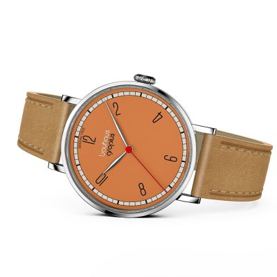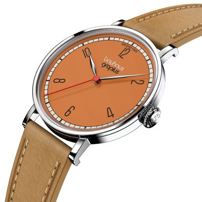 This Walter Gropius watch has a case made of stainless steel with a diameter of 38 mm and is fitted with a leather band. Inside the case lies a Miyota movement and the watch features a Double anti-reflective sapphire crystal.