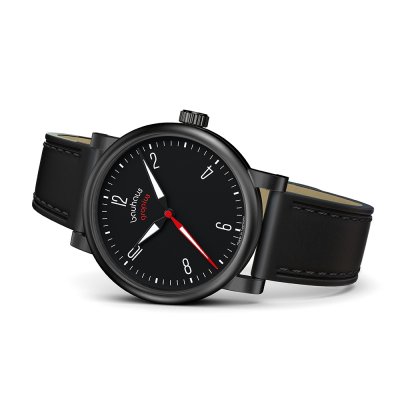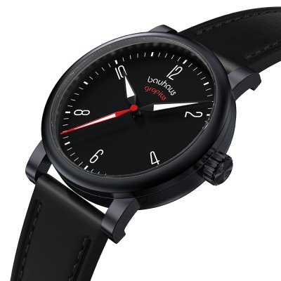 This Walter Gropius watch has a case made of stainless steel with a diameter of 40 mm and is fitted with a leather band. Inside the case lies a Seiko Instruments Inc. movement and the watch features a Double anti-reflective sapphire crystal.