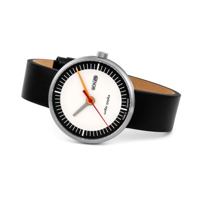 This Walter Gropius watch has a case made of stainless steel with a diameter of 39 mm and is fitted with a leather band. Inside the case lies a Miyota movement and the watch features a Double anti-reflective sapphire crystal.