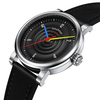 This Walter Gropius watch has a case made of stainless steel with a diameter of 40 mm and is fitted with a leather band. Inside the case lies a Seiko Instruments Inc. movement and the watch features a Double anti-reflective sapphire crystal.