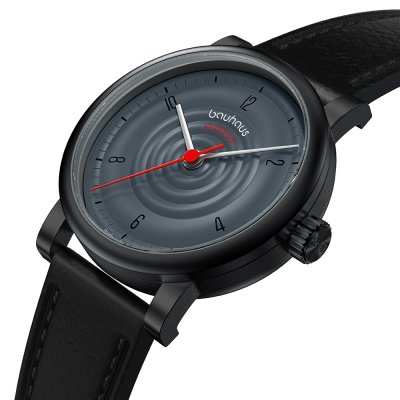 This Walter Gropius watch has a case made of stainless steel with a diameter of 40 mm and is fitted with a leather band. Inside the case lies a Seiko Instruments Inc. movement and the watch features a Double anti-reflective sapphire crystal.