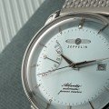 This Zeppelin watch has a case made of stainless steel with a diameter of 42 mm and is fitted with a stainless steel band. Inside the case lies a Miyota movement and the watch features a K1 Mineral crystal.