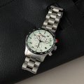 This Zeppelin watch has a case made of stainless steel with a diameter of 43 mm and is fitted with a stainless steel band. Inside the case lies a ETA movement and the watch features a K1 Mineral crystal.
