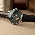 This Zeppelin watch has a case made of stainless steel with a diameter of 40 mm and is fitted with a leather band. Inside the case lies a Miyota movement and the watch features a K1 Mineral crystal.