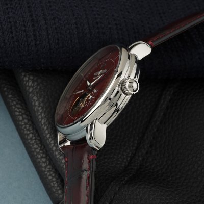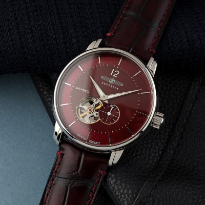 This Zeppelin watch has a case made of stainless steel with a diameter of 40 mm and is fitted with a leather band. Inside the case lies a Miyota movement and the watch features a K1 Mineral crystal.