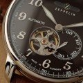 This Zeppelin watch has a case made of stainless steel with a diameter of 40 mm and is fitted with a leather band. Inside the case lies a Miyota movement and the watch features a K1 Mineral crystal.