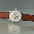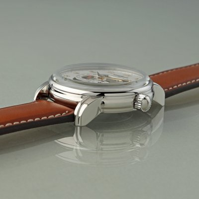 This Zeppelin watch has a case made of stainless steel with a diameter of 42 mm and is fitted with a leather band. Inside the case lies a Miyota movement and the watch features a K1 Mineral crystal.